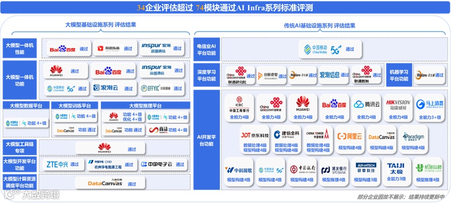 截至当前,AI Infra评估体系已面向34家单位完成74个模块的测试。