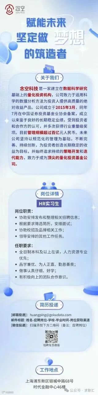 1、为成长而来:刷简历式短期实习难以接触到投研的精髓,也是对彼此时间的浪费,请勿投递谢谢;