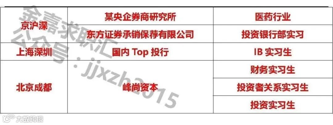 4、有一线PE/VC、FA、投行、券商行研等相关实习经历者优先;