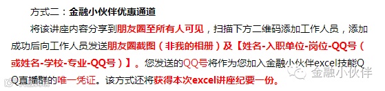 扫描下方二维码添加工作人员,添加成功后主动向其打赏8.88元红包,并发送【姓名-入职单位-岗位-QQ号(或姓名-学校-专业-QQ号)】。您发送的QQ号将作为您直接进入金融小伙伴excel技能QQ直播群的唯一凭证。该方式还将获得excel基础大全教学视频大礼包一份、上期wind讲座录屏以及 wind使用技能大礼包。