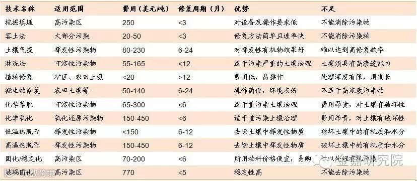 图表5. 常用土壤修复技术及其使用特点