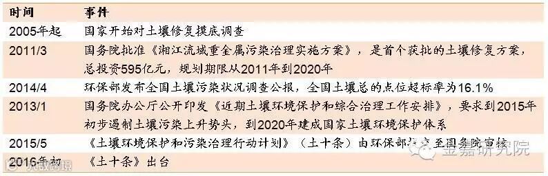 环保政策的密集落地助推我国土壤修复行业发展。2014年初环保部发布《污染场地土壤修复技术导则》等5项标准,4月份《土壤污染防治法》被列为全国人大立法计划项目,11月环保部发布《工业企业场地环境调查评估及修复工作指南》,2015年1月环保部发布《农用地土壤环境质量标准》与《建设用地土壤污染风险筛选指导值》征求意见稿。继“大气十条”、“水十条”之后,“土十条”的发布已呼之欲出,全国土壤修复市场将进入大规模启动阶段。政府大力推动土壤修复行业,在政策面上给予强力支持的大环境。