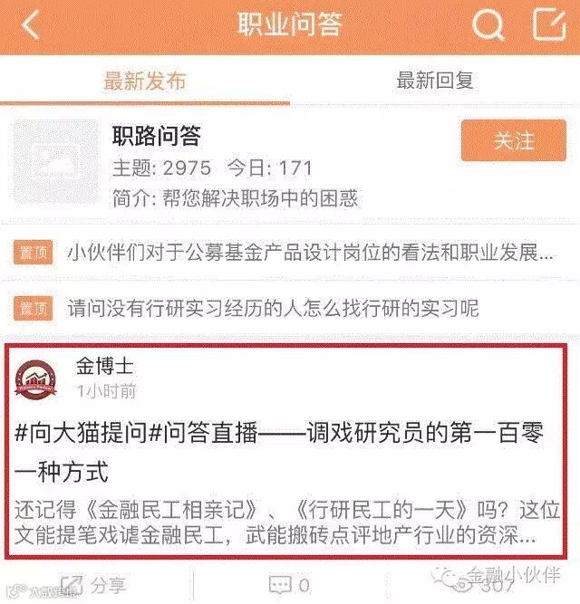 Step1:即刻下载【小金窝】APP,下载二维码见后文,点开首页【职业问答】,就可以进入问答板块写下你的疑问了,提问时记得在帖子#向大猫提问#下编写你的问题,大猫就能一眼看到你的这条提问了。#提问链接请点击阅读原文#
