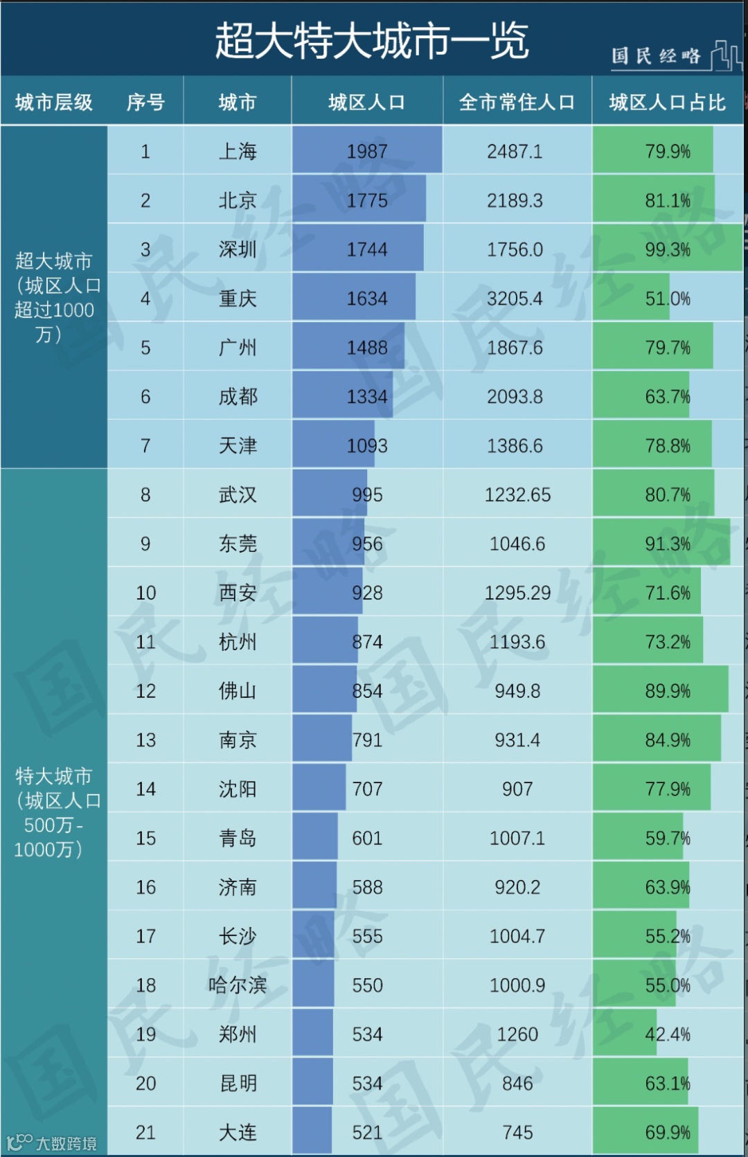 目前,我国共有7个超大城市,除了北上广深四大一线城市,还有重庆、天津两大直辖市,以及成都。(金融小伙伴,快进你的职业成长。想要找金融实习、求职/跳槽到金融行业的朋友们,可添加VX:feifan00999)