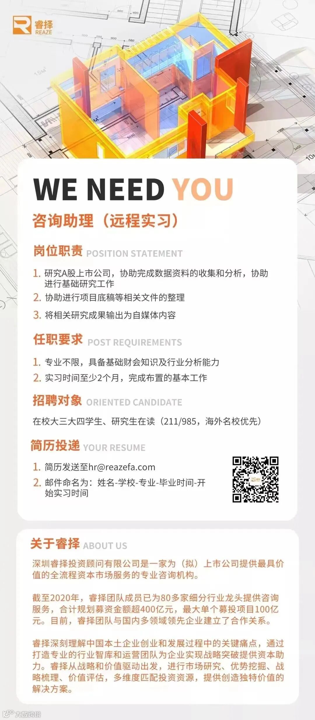 4、至少一段券商行研,投资实习经历或重点硕士学历,文字能力强,有基础经济学、公司财务和数据处理能力。(简历可附带以往实习研究报告和成果)。