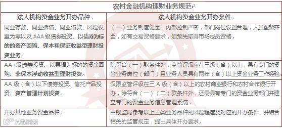 1、按照银行的监管评级对投资债券的评级进行限制。监管机构主要格局各项运营和财务指标来对农村金融机构进行监管评级,而且评级越高的机构比例越少。按照该征求意见,评级在三级以下的机构,只能投资AAA评级信用债和利率债,也不能开展非保本理财业务。而此前监管机构并无这么严格的规定。因此有相当一部分农村金融机构在债券投资的评级上会受到限制。