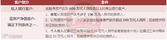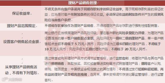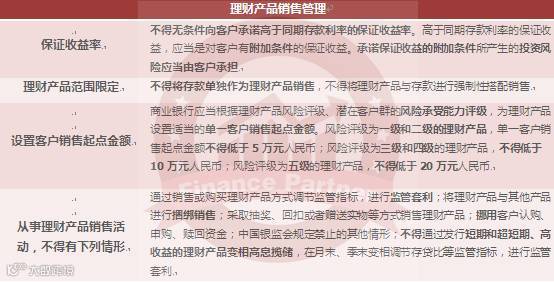 理财产品销售管理要求银行为理财产品按照五级分类原则,并设置适当的单一客户销售起点金额。这是银监会首次对银行理财产品各级销售门槛提出统一要求,五级分类原则是一个新概念。其实在此前,各家银行在销售理财产品时,实际已按照产品不同风险设定了不同的客户准入标准。客户准备标准的分级设定,首先考虑的肯定是风险问题,能够达到5万门槛的客户被认为是对风险认识更高,所以银监会要求银行通过这个分级门槛来筛选出风险承受能力更高的客户,以控制每级客户的流动性风险。
