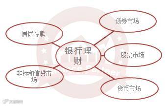 【2009】65号首次对理财资金适用范围做出明确规定,投资对象包括固定收益类金融产品、信贷资产、信托贷款、金融衍生品、结构性产品等等,涉及非标信贷市场、债券市场、货币市场和股票市场4个市场,如下图所示。而监管部门对于股票市场仍存在保留,规定不可投资于境内二级市场公开交易的股票或与其相关的证券投资基金、未上市企业股权和上市公司非公开发行或交易的股份。这体现了其对于未成熟、稳定的市场持有谨慎态度,这也正是政策规范和引导银行理财合规、稳健发展的思路和意图。