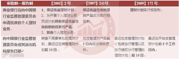 商业银行开展个人理财业务实行审批制和报告制——(【2007】241商业银行发行保证收益性质的理财产品,实行报告制——[2009]172理财计划报告制)