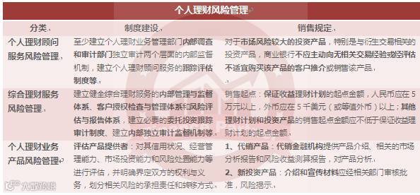随着银行理财业务的广泛开展,部分机构经营不规范、误导销售等行为开始显现,社会反响较大。对此,监管部门在一般性管理、代客境外理财、风险管理、银信合作等各个方面陆续出台了多个文件,对具体业务进行规范、引导,银行理财发展的制度环境逐步得以完善。这一阶段监管方向是在原有管理办法的制度框架下,对部分风险比较突出、社会反响较大的方面如投资管理、销售行为等具体环节,提出更具体、明确的要求,体现了监管部门规范和引导银行理财合规、稳健发展的思路和意图。