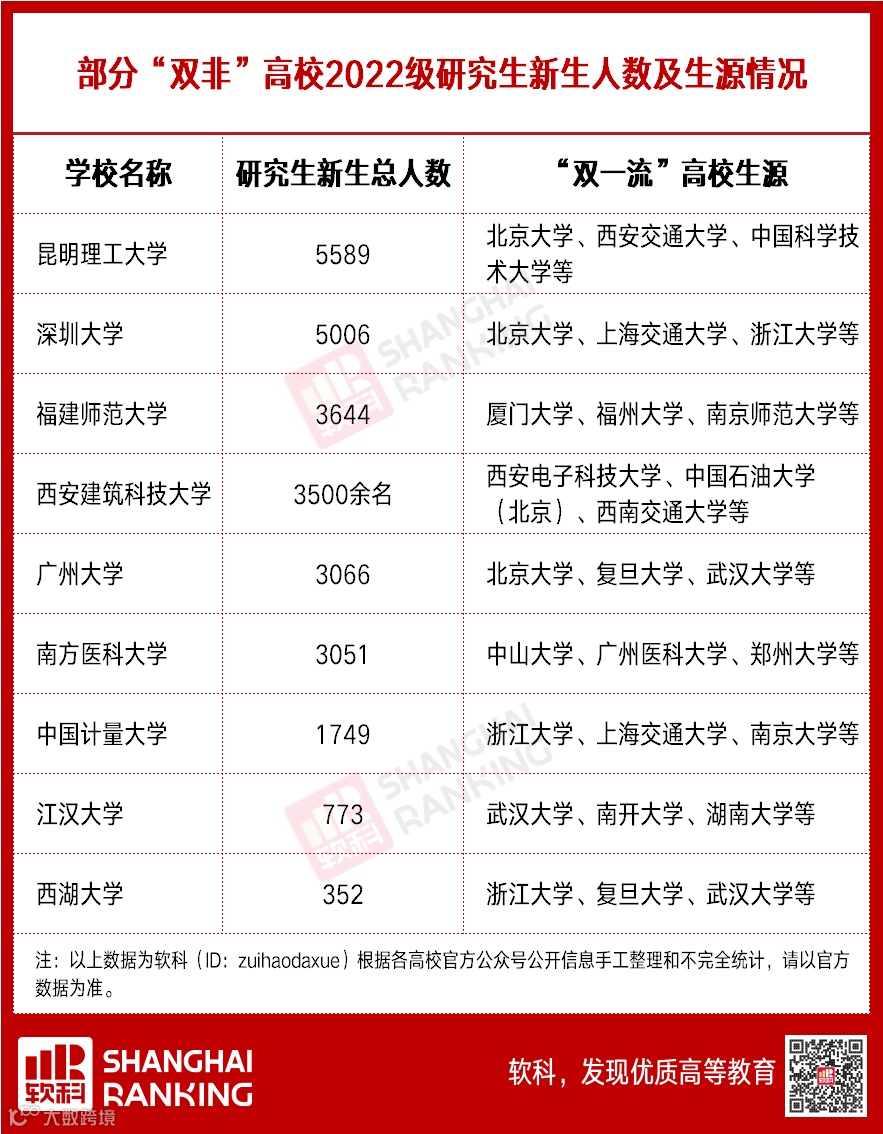 昆明理工大学公布的新生数据显示,学校2022级研究生新生中,有92名本科来自985高校,包括北京大学、西安交通大学、中国科学技术大学、哈尔滨工业大学这四所C9高校。
