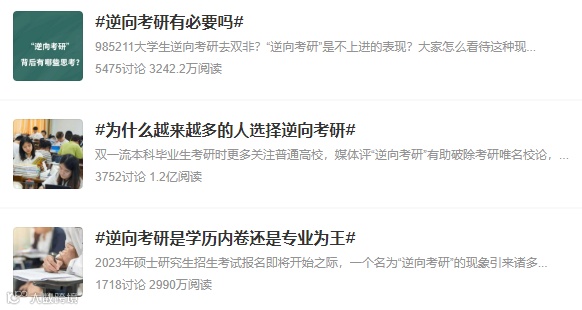 2023年考研已进入最后冲刺阶段,关于考研的话题频频登上热搜。在这之中,一个名为“逆向考研”的现象在网络上引发热议。