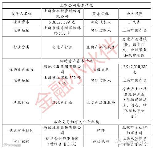 金丰投资以全部资产及负债与上海地产集团持有的绿地集团等额价值的股权进行置换,拟置出资产由上海地产集团或其指定的第三方主体承接。