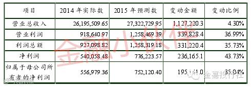 假设在本备考合并财务报表期初本次交易事项已经完成,从交易前后数据来看,金丰投资2015年预测营业利润、预测利润总额及预测净利润等财务指标较合并前均有显著提高,以后的年度公司的盈利能力将得到进一步的提升。