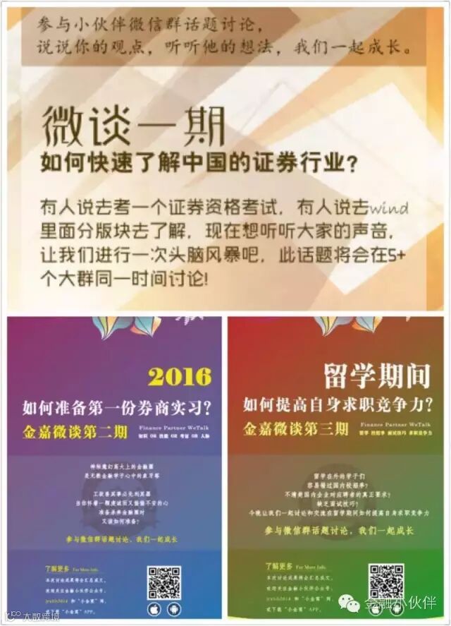 金融小伙伴专注于金融教育与职业发展,微信群一直秉承这一宗旨,为有志于从事金融业及已经踏入金融业的人士提供交流信息、学习知识、扩大人脉的平台。