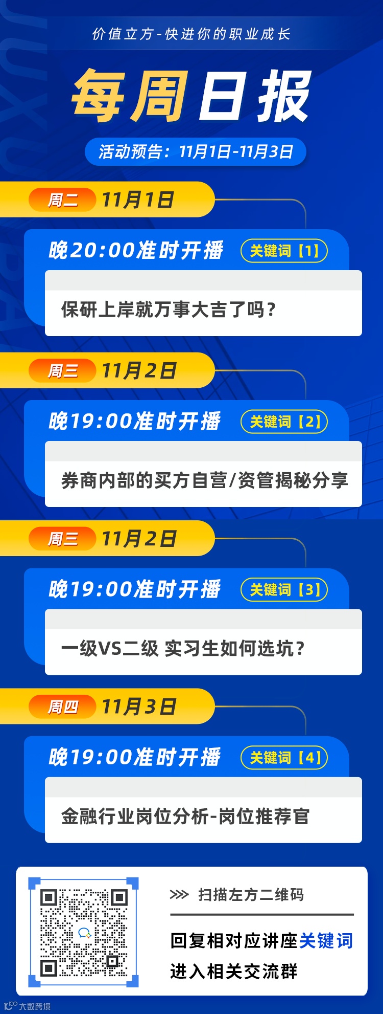 (金融小伙伴,快进你的职业成长。想要找金融实习、求职/跳槽到金融行业的朋友们,可添加VX:feifan00999)