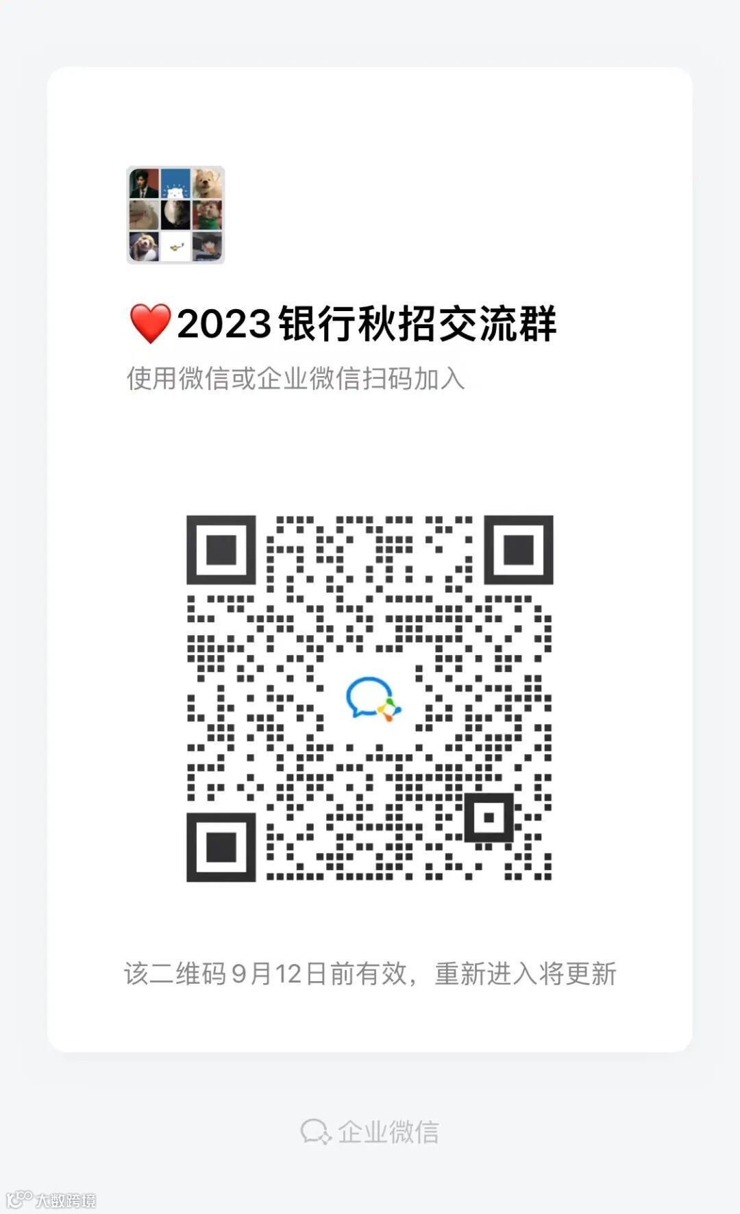在秋招最好的时间,想要银行笔面试的伙伴们进群啊!