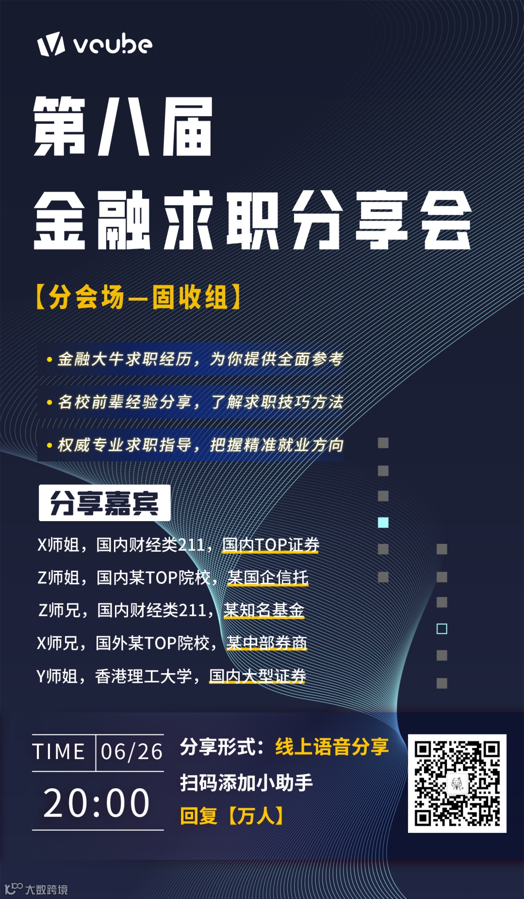 金融小伙伴致力于搭建一个金融垂直领域职业信息分享和交流公益平台,通过持续不断的公众号推文和线上线下活动,提供及时、全面、高效的行业招聘信息和职场提升经验。目前,我们已吸引了超过100万粉丝,在海内外金融学子和在职人士中均享有盛誉。