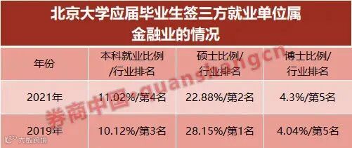 根据就业质量报告,2021年,清北毕业生从事金融行业工作的占比双双下降。