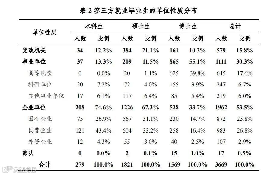 从就业方向来看,清华大学2021届毕业生签三方就业的单位以企业为主,达签三方就业人数的53.5%。
