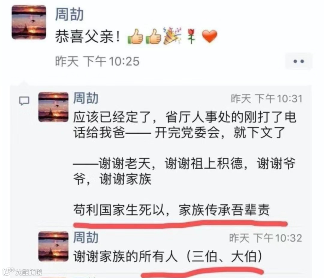 没过多久就「恭喜父亲」搞定副局长之位,言语间直言这是家族传承,还感谢三伯和大伯...