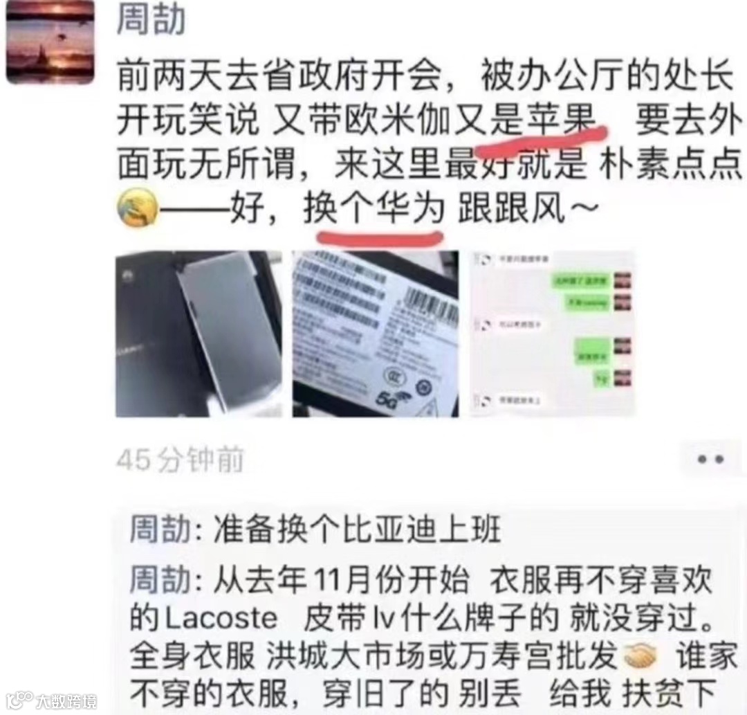 炫富:喝的白毫银针20万一斤,戴欧米茄手表、系LV皮带;为了照顾身边普通同事的感受,自降身份只开四五十万元的车子,对外只用华为手机。