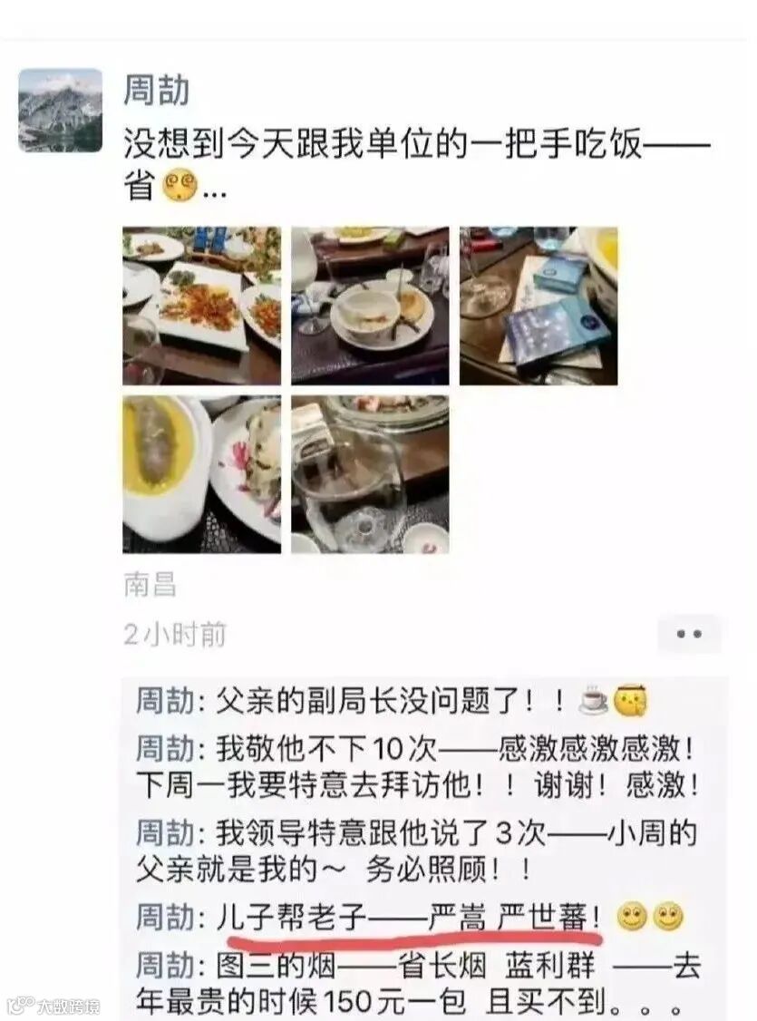 和单位一把手吃饭,自比明朝超级大贪官严氏父子,吃着吃着父亲的副局长没问题了,领导当场认爹:小周的父亲就是我的(父亲)。