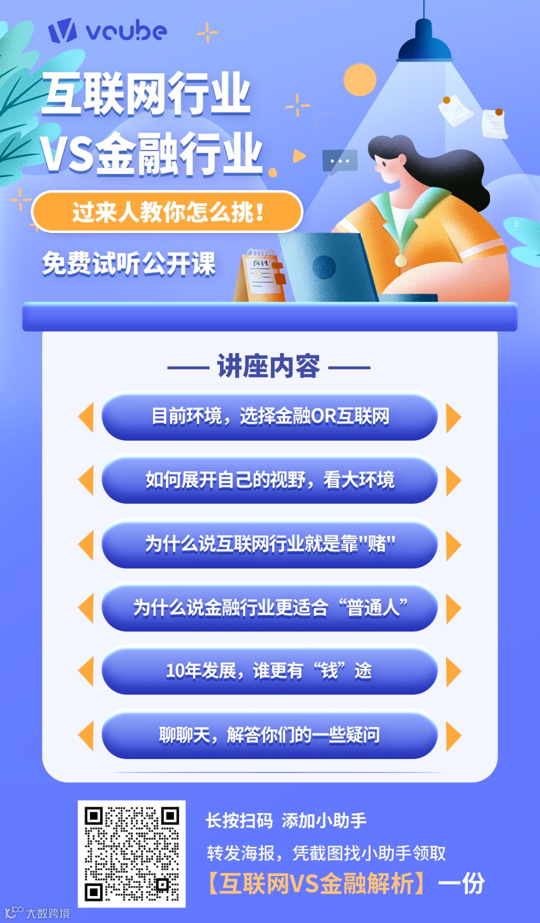 如果你现在还对未来感到迷茫,不用担心。金融小伙伴给大家带来一期全新讲座,不是帮你做选择,而让行业前辈从更高的维度上给大家客观分析两个行业,扩展你的视野。