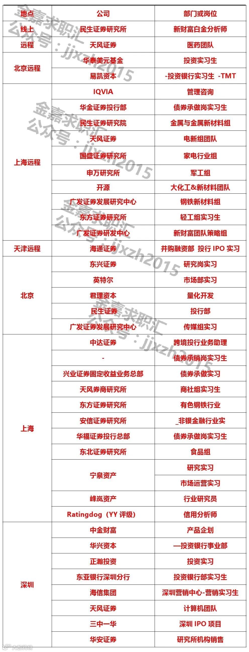 所以,我在此特别推荐一个公众号《金融远程实习》,每日持续发布各大金融机构的求职信息,而且疫情被隔离的同学不影响,在家就可以拥有实习经验。