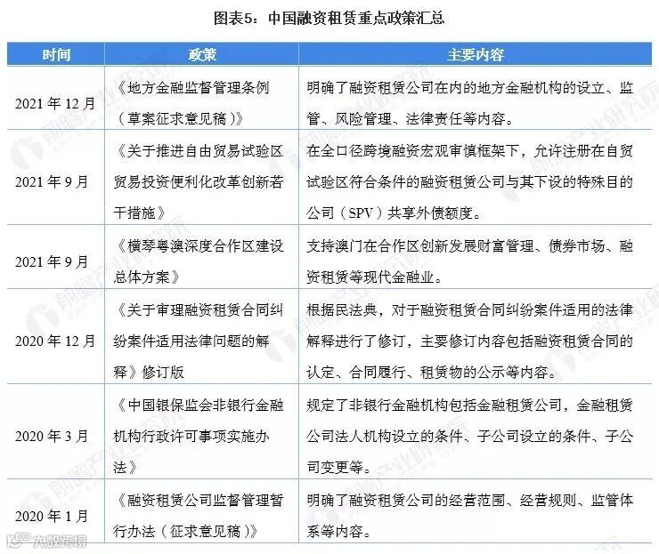 近年来,融资租赁行业政策层出不穷,主要包括规范融资租赁公司的设立、监管等政策,以及推动重点区域融资租赁业务发展的政策。