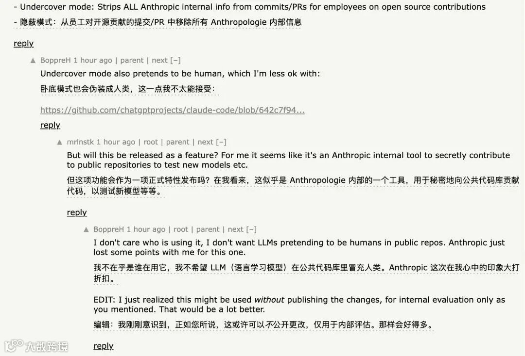 卧底模式(Undercover mode)引争议:提交开源代码PR时移除Anthropic信息,代码还要求AI伪装人类,令不少开发者不适。