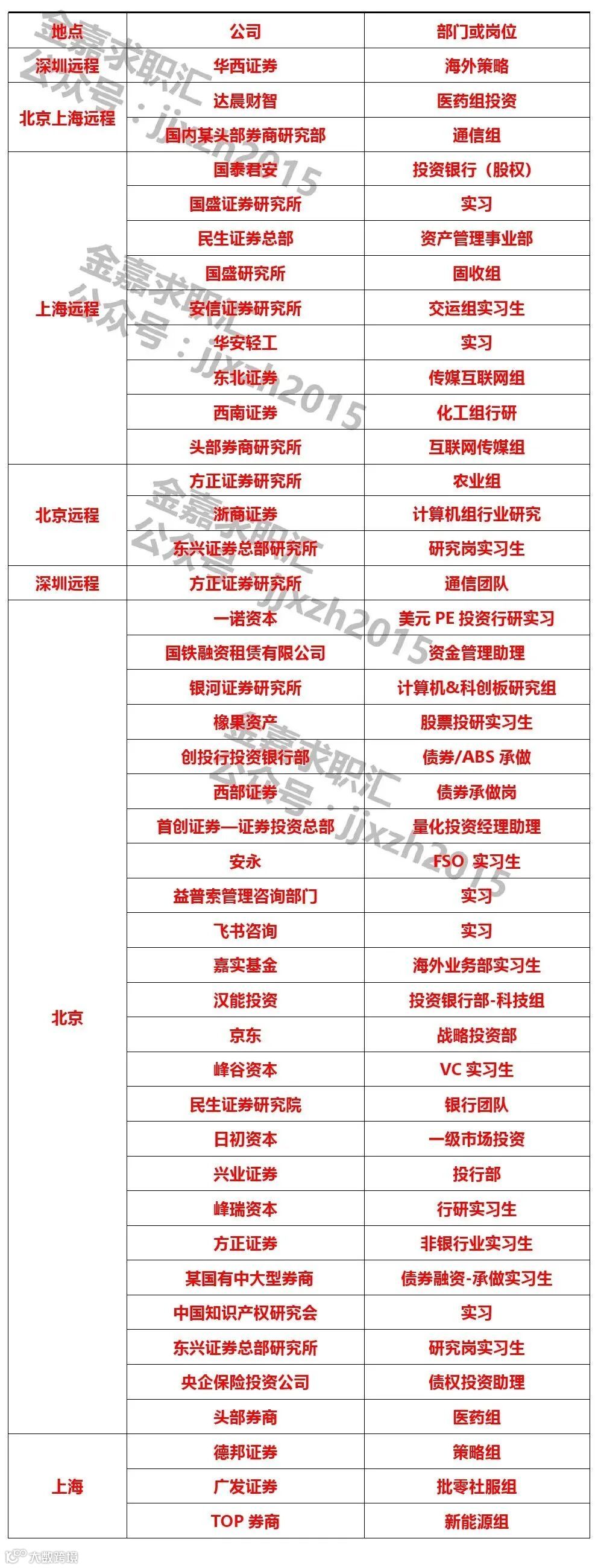 招聘部门包括:社保与银行业务部、机构业务部、券商业务部、养老金业务部、香港子公司
