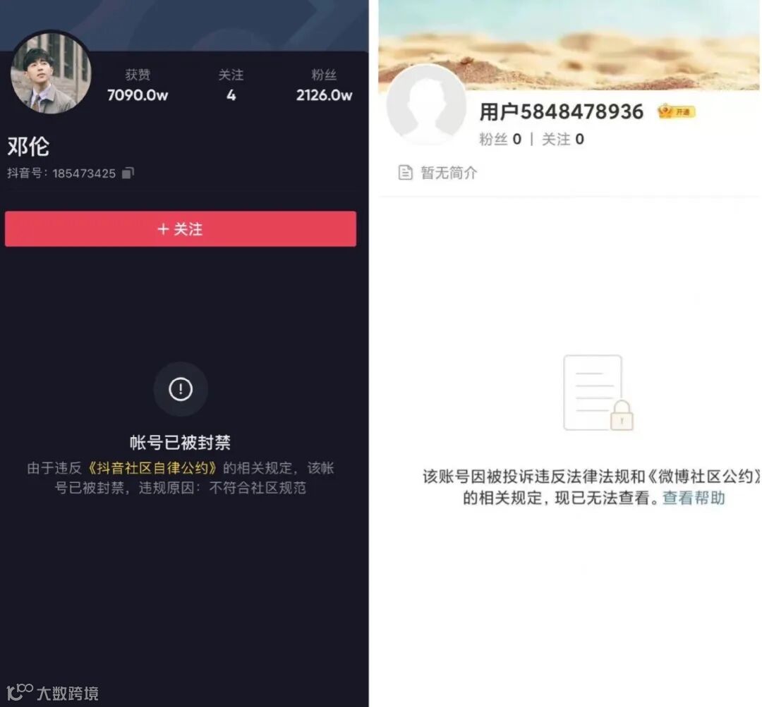 目前邓伦工作室、抖音号,以及个人微博号都已经被封了。