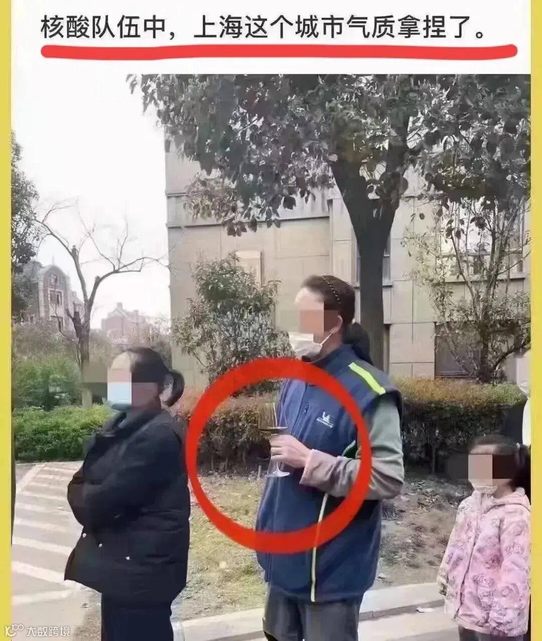 现在上海的这个状况,谁还记得之前热搜上的评论,上海人生活优雅精致,还有不少人转发上海爷叔核酸检测排队时喝红酒,以及上海小区解封后第一件事喝咖啡等等的段子呢?