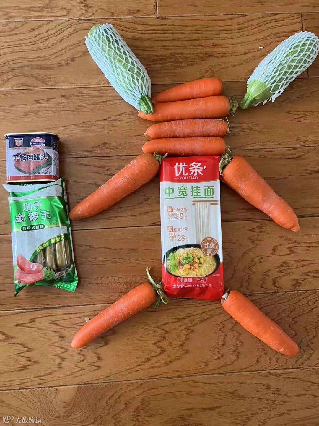 虹桥镇:考虑得很周全,肉、方腿、鸡蛋、水果,蔬菜,油等,应有尽有,最难得的竟然连薯片也配上了。