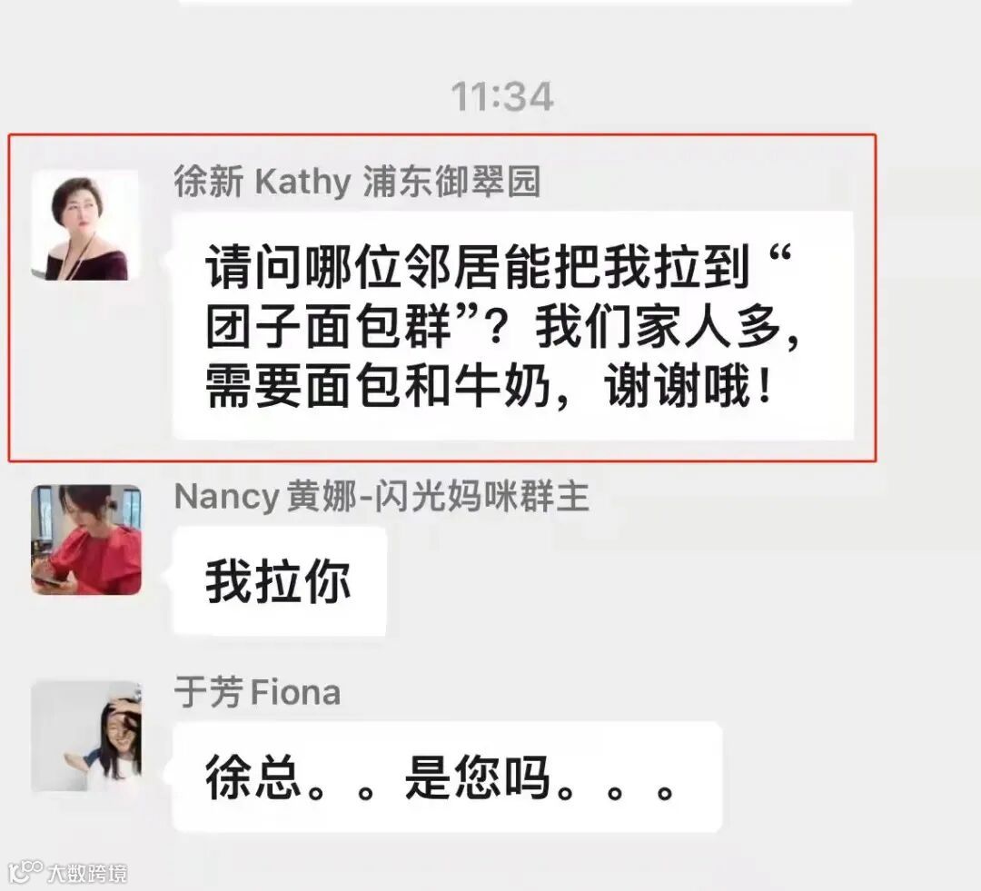 昨天,还在朋友圈里看到一张截图,投资女王在业主群里询问:请问哪位邻居能把我拉到“团子面包群”?我们家人多,需要面包和牛奶,谢谢哦!