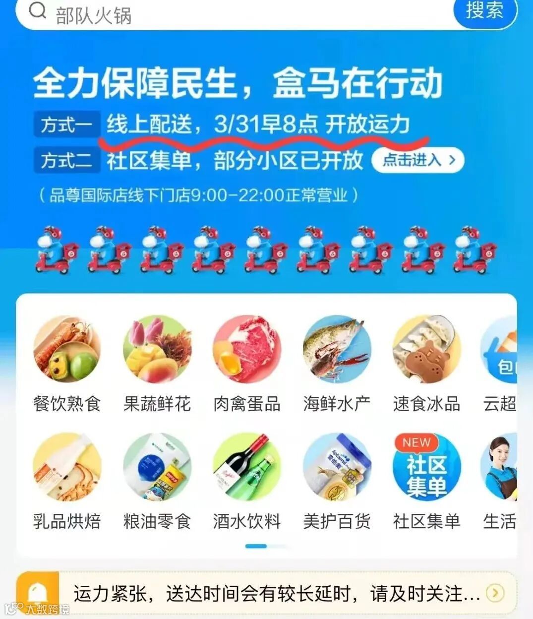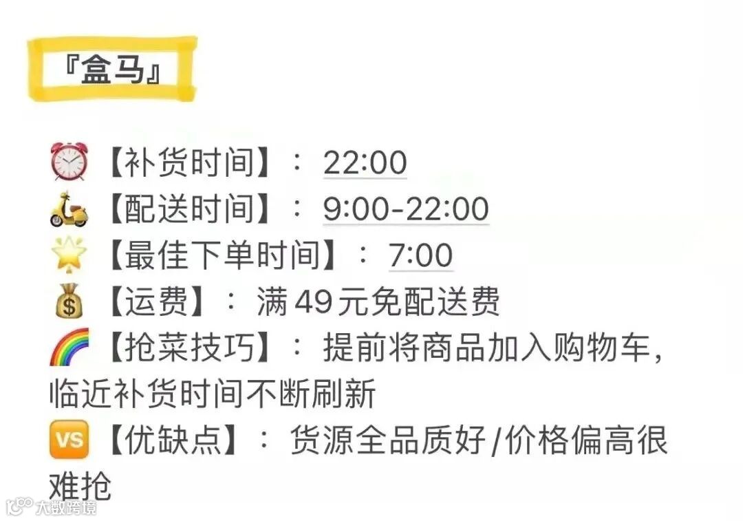 不同区门店时间可能不同,请参见盒马APP首页通知