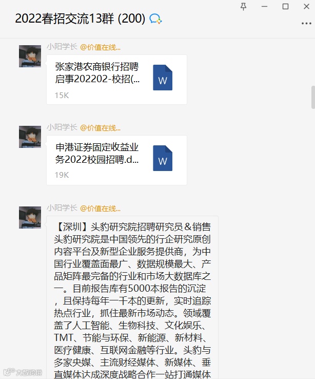 我们会有专人每日更新春招表,给大家发到群里