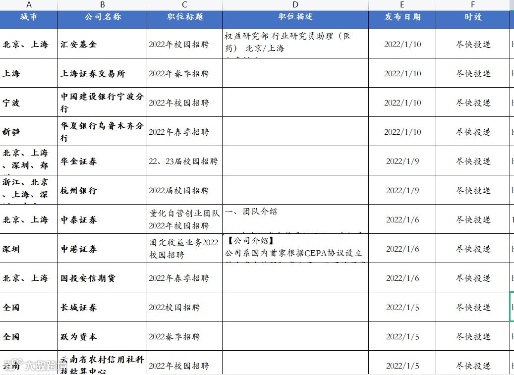 金融行业早已放出大量春招岗位