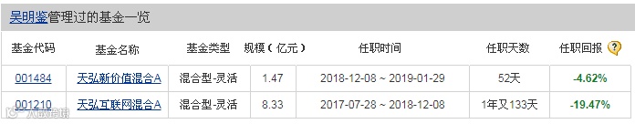 第一只是2017年中开始管的,持续了一年半左右,亏损19.47%,另一只从2018年底开始管,只做了52天就结束了。