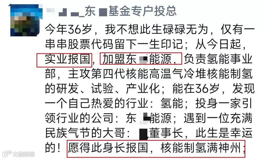 去年10月,原东吴基金专户投资总监刘浩宇在朋友圈宣布,“不想此生碌碌无为”,不干金融了,要干实业,做新能源,加盟东华能源,负责氢能事业部。