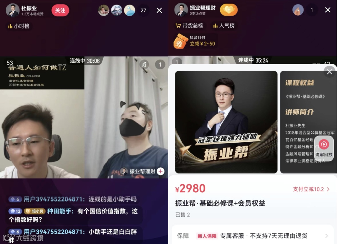 他在抖音开设了直播间,与网友分享个人从业经历、行业看法等心得体会,并且推销自己的付费课程。