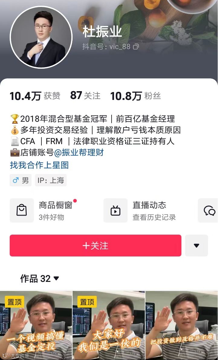 7月份的时候,前公募基金冠军杜振业转战财经博主,迅速拿下10.8万粉丝。