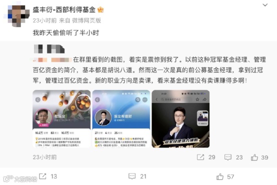 不只是普通散户在关注他,基金圈的同行,都跑去他的直播间围观学习,可能是想学点市场的知识,也可能是想看看这种转型挣钱模式靠不靠谱。