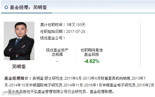 资料显示,吴明鉴之前的从业经历有天弘基金、财富里昂、中银国际、华商基金等,既做过机构销售,又当过电子研究员。