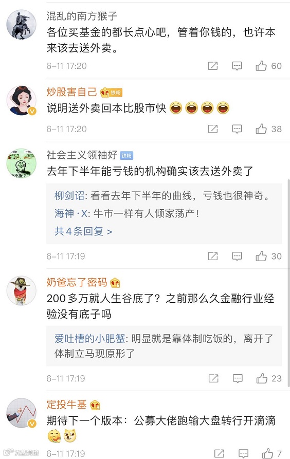 然而,转型体面的都是业绩不错的大牛,亏惨的人只能去送外卖。