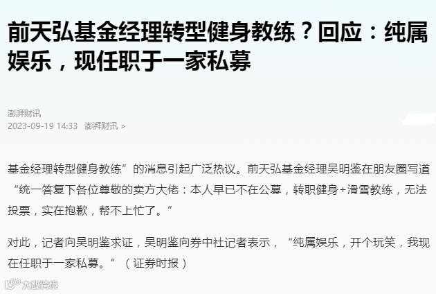 《基金经理改行当健身教练刷爆朋友圈,当事人回应!有人直播卖课、送外卖,基金经理跨界五花八门》每日经济新闻