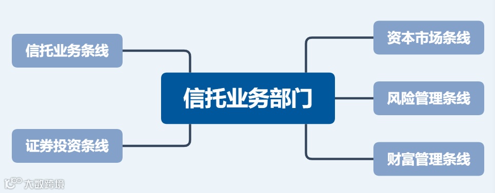 信托业务条线:这类部门属于前台业务部门,是信托公司业务发展的核心,也是收入和利润的直接创造者,整个公司几乎就靠他们吃饭了。