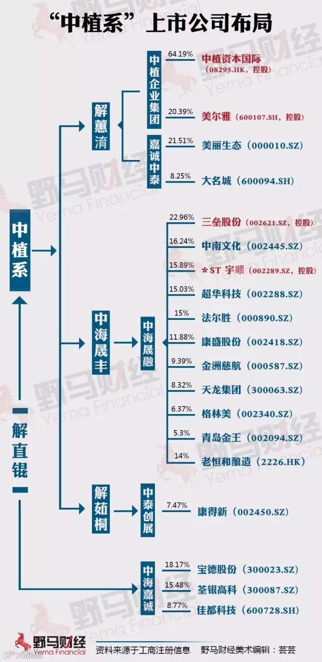 野马财经梳理后发现,“中植系”目前参与投资的上市公司有33家,其中控股9家,