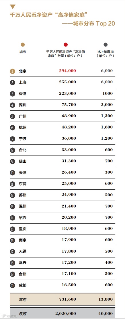 这三座城市的高净值家庭都达到了20+万户,呈现“一骑绝尘”之势。